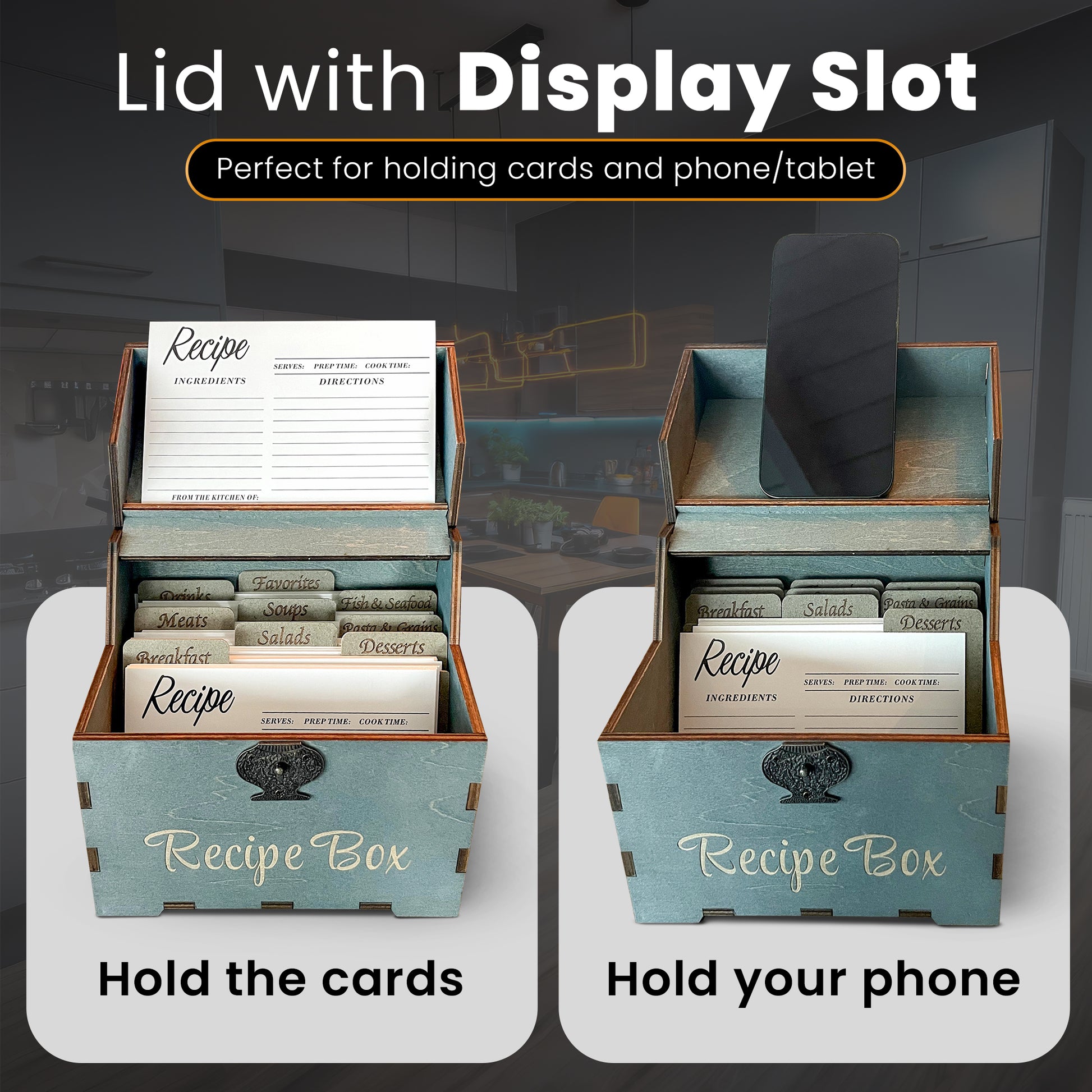 Upgrade your kitchen organization today with the Albino Monkey Blue Recipe Box!